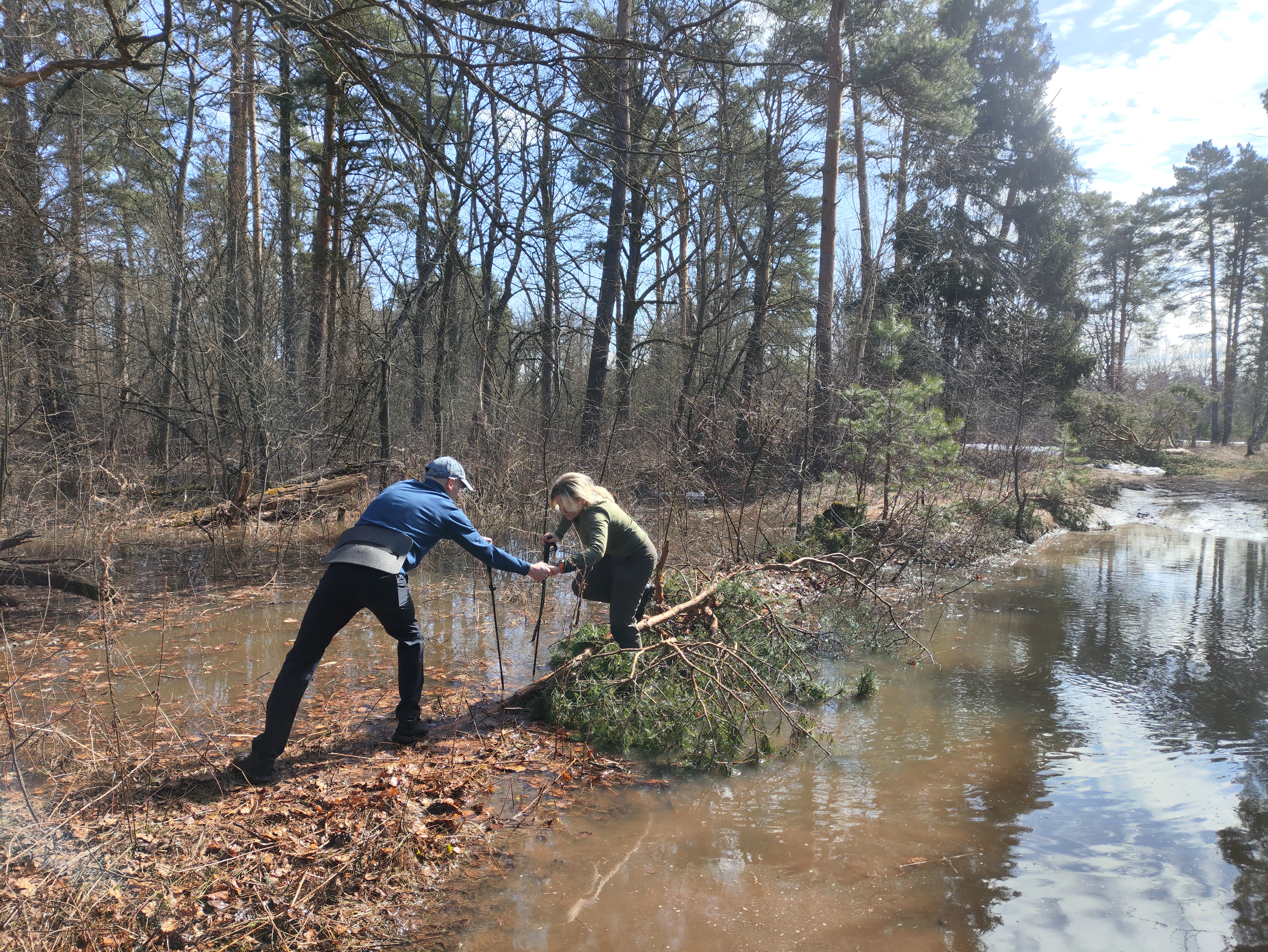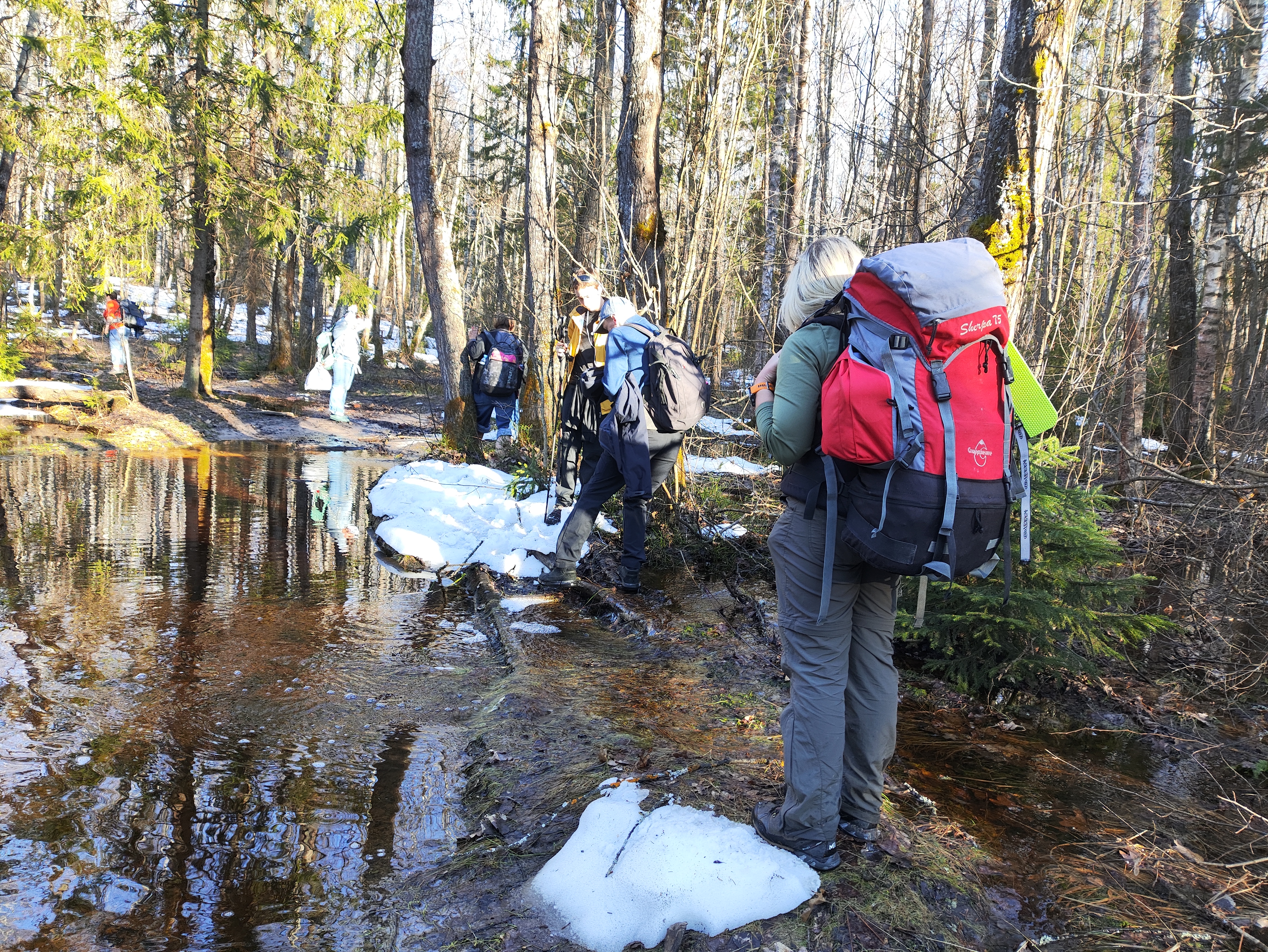 Открытие походного сезона прошло великолепно) Подразумевалась легкая такая неспешная прогулка по лесу... И летом она, безусловно, такая... однако зима была снежная... очень-очень снежная... и в лесу было по-разносу: и моря разливные повсюду... и снега местами по колено... но порой и вполне себе сухие местами для отдыха) Шли весело, с неожиданным открытием купального сезона)) эх... надо было купальник брать и аквашузы, и не заморачиваться с переправами через "моря", а напрямки... водичка, конечно, холодная, но солнышко припекало вполне себе по-летнему) Все прошло отлично, весело и энергично!)
