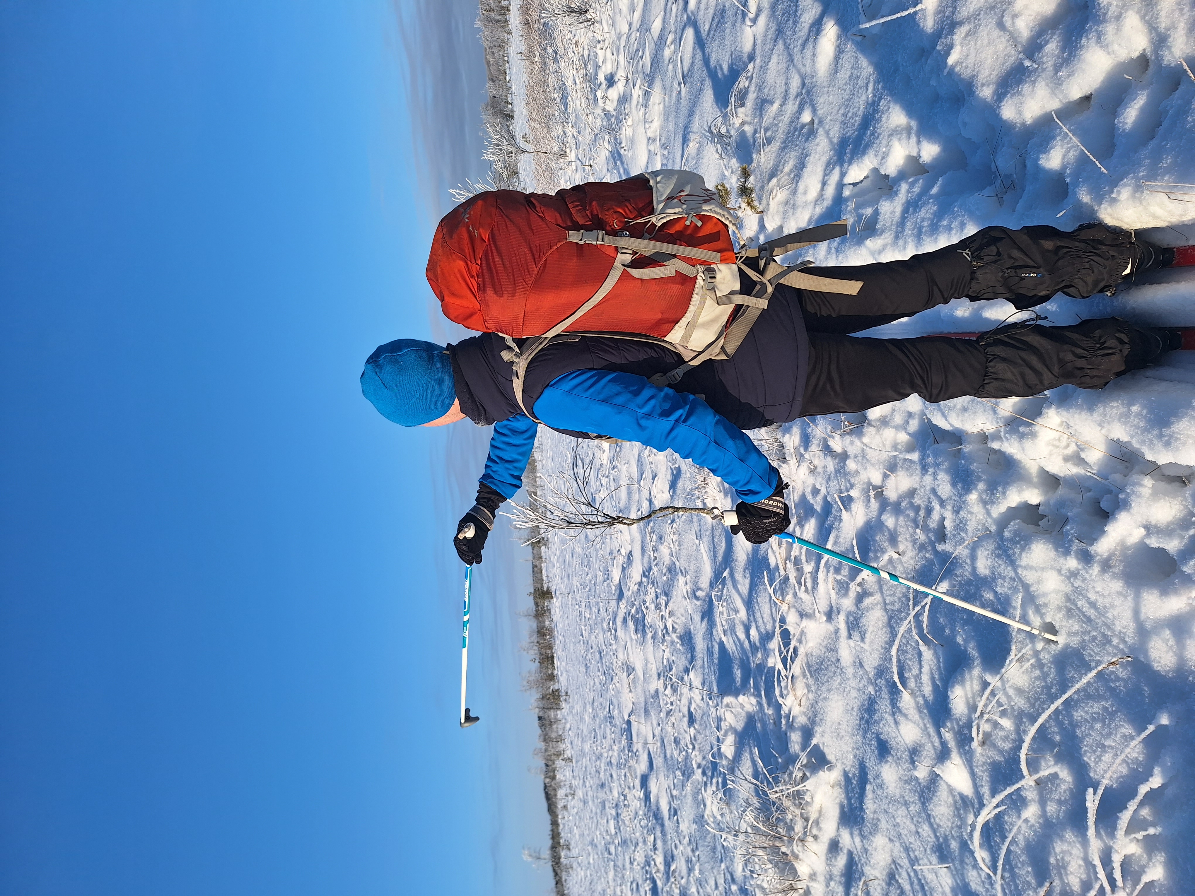 Крайне рекомендую, приятный и достаточно простой поход выходного дня. Рекомендую брать с собой термогрелки. Если с погодой повезет, то увидите роскошнейшие, заметенные снегом хвойные леса, залитые золотом скудного зимнего солнца. Снег, как белые страницы книги, расчерчен строчками следов, рассказывающих целые истории: вот здесь что-то старательно рыла леса, вот тут тропку пересек лось, а вот здесь кого-то поймали. После упорной борьбы со снегом с огромным удовольствием перекусываешь горячим обедом и идешь дальше - чтобы застать медового цвета закат на предложенном инструктором месте, с которого особенно хорошо смотрится. Спасибо большое Алексею, который знает самые красивые места на маршруте, и отдельное спасибо группе!