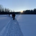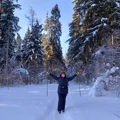 Сегодня проснулась в 5 часов утра за пол часа до будильника. Встала, покормила кишаську, надела новое термобельё от Thermirra(какое оно приятное, рекомендую) и потихоньку отправилась к метро и Ярославскому вокзалу. На вокзале приобрела билет и села в электричку в 3 вагон с конца, там встретилась со всеми ребятами походниками, были и знакомые лица с которыми мы пересекались в путешествиях, встреча была тёплой. Мы все дружно доехали до станции Калистово и двинулись в путь и перед нами открылась красота. Нам очень повезло с погодой, утром было -14 и солнечно! Деревья откидывали ультрамариновые(синие) тени, по деревьям скакали зайчики от солнца. Красота нереальная! Мы шли по лесу и полям, шли около 2 км по дороге которую мы делали сами своими шагами. Ощущение парения над снегом и одновременного провала стопы вглубь. Идя иногда по колено в снегу это незабываемое, новое впечатление, проваливаться тоже классно! А вокруг тишина, солнце, синие тени, искрящийся снег и красота! Мы шли дальше и пришли к Храмовому комплексу церкви иконы Божией Матери Страстная в Артёмово. Какая там красота и есть источник с чистой водой! Затем мы со Светой(инструктор) пошли делать площадку для обеда. Мы нашли сбоку огромного поля местечко с деревьями и столиком. Я начала расчищать круглую площадку от снега(снега было по колено). На расчистку у меня ушло 30 мин. Затем начала копать до земли снег для кострища. Докопала и расчислила. Осталась очень довольна проделанной работой. Света в это время варила ароматный кофе и сырный суп, мы делали бутерброды с сыром и кабачковой икрой. Надо ли писать, что еда с костра божественна? Это всё было очень вкусным и аппетитным. А также мы поджаривали сосиски на костре. О костре. Ребята принесли сначала карагач, но он не горел, потому-что был сырой. Потом они принесли ёлку и с 3-го раза разожгли шикарный костёр. После вкусного и сытного обеда мы со Светой инструктором выдвинулись в путь раньше всех. Я стала медлительной из-за терапии, но Света меня расходила, стала ходить быстрее и мы быстренько преодолели лес и вышли на поле, а потом опять шли по лесу. Перед нами открылась такая волшебная красота. Спящий лес, хрустящие сугробы, снег как блестки, садящееся солнце с его игривыми бликами на деревьях. Великая Российская красота! Очень люблю природу нашей страны! К нам со Светой присоединились пару ребят из нашей группы которые нас догнали и мы вышли к роднику, набрали чистейшей воды и пошли в усадьбу Абрамцево. Мы дошли до усадьбы Абрамцево, какая красота на территории! Такие аутентичные здания, русский дух. Нашим экскурсоводом была Федорова Татьяна Сергеевна, женщина которая влюблена в своё дело, историю и эту прекрасную усадьбу. Она с таким восторгом и искренность рассказывала про двух основных хозяев этого места, что они оживали в моем воображении как фильм. Её владельцами были писатель С.Т. Аксаков (c 1843), промышленник С. И. Мамонтов (с 1870). На фото Вы можете увидеть печь выложенную изразцами, это работа Врубеля. Мне очень захотелось сфотографироваться на фоне. Искусствовед Татьяна Сергеевна рассказала нам про жизнь в этом доме Аксакове Сергее Тимофеевиче и его семье. Его дружбе с Гоголем(он неоднократно гостил в Абрамцево). Серге́й Тимофе́евич Акса́ков - русский писатель, чиновник и общественный деятель, литературный и театральный критик, мемуарист