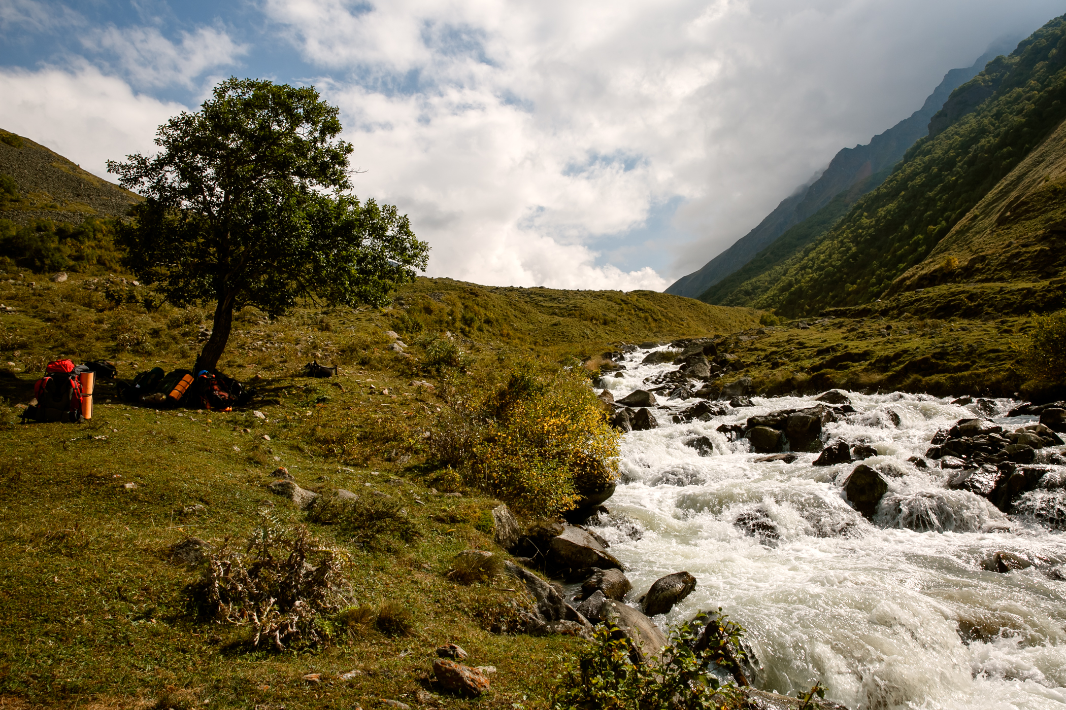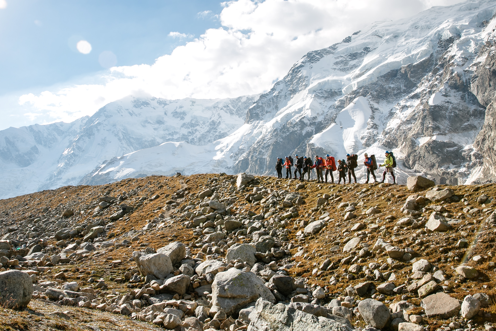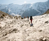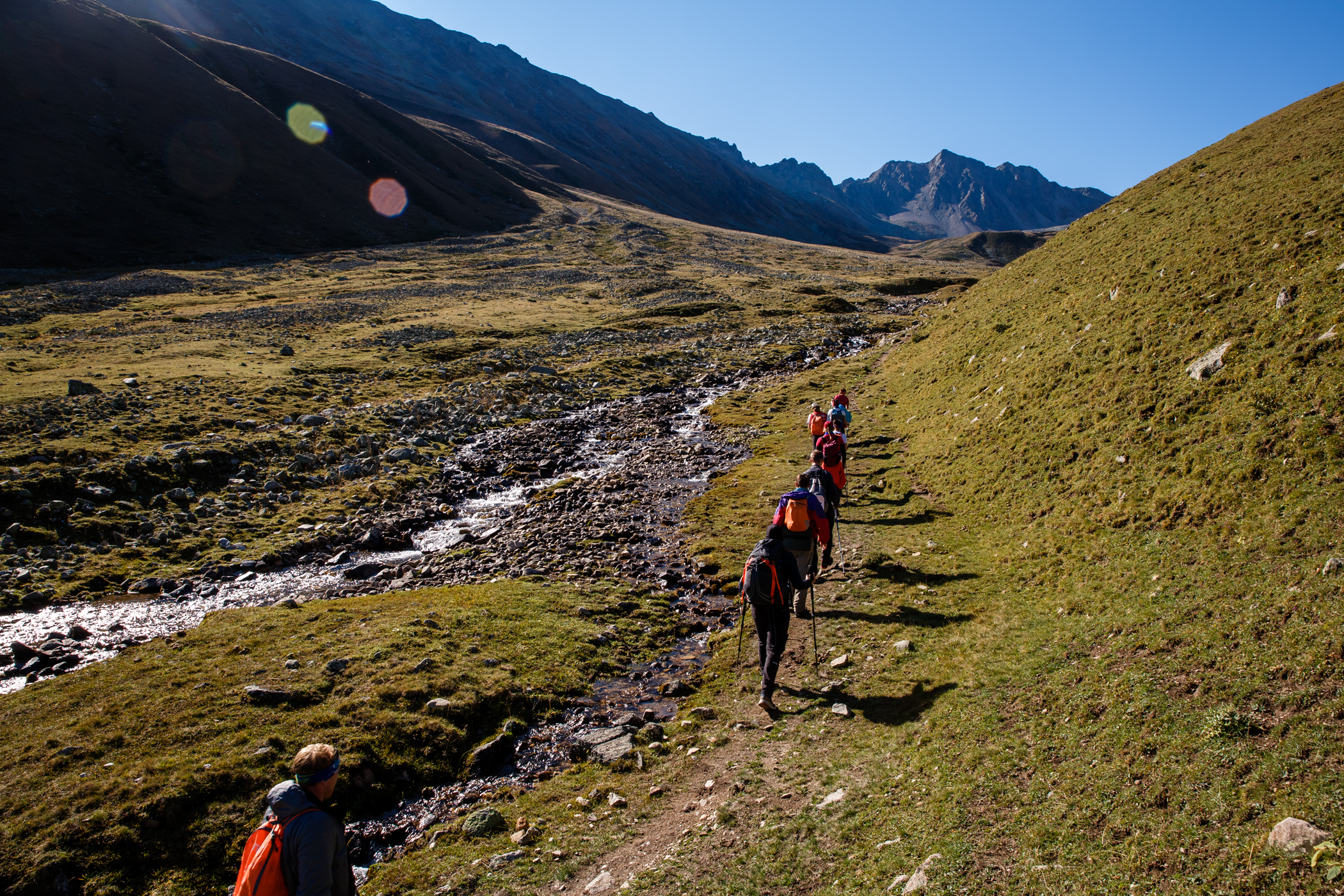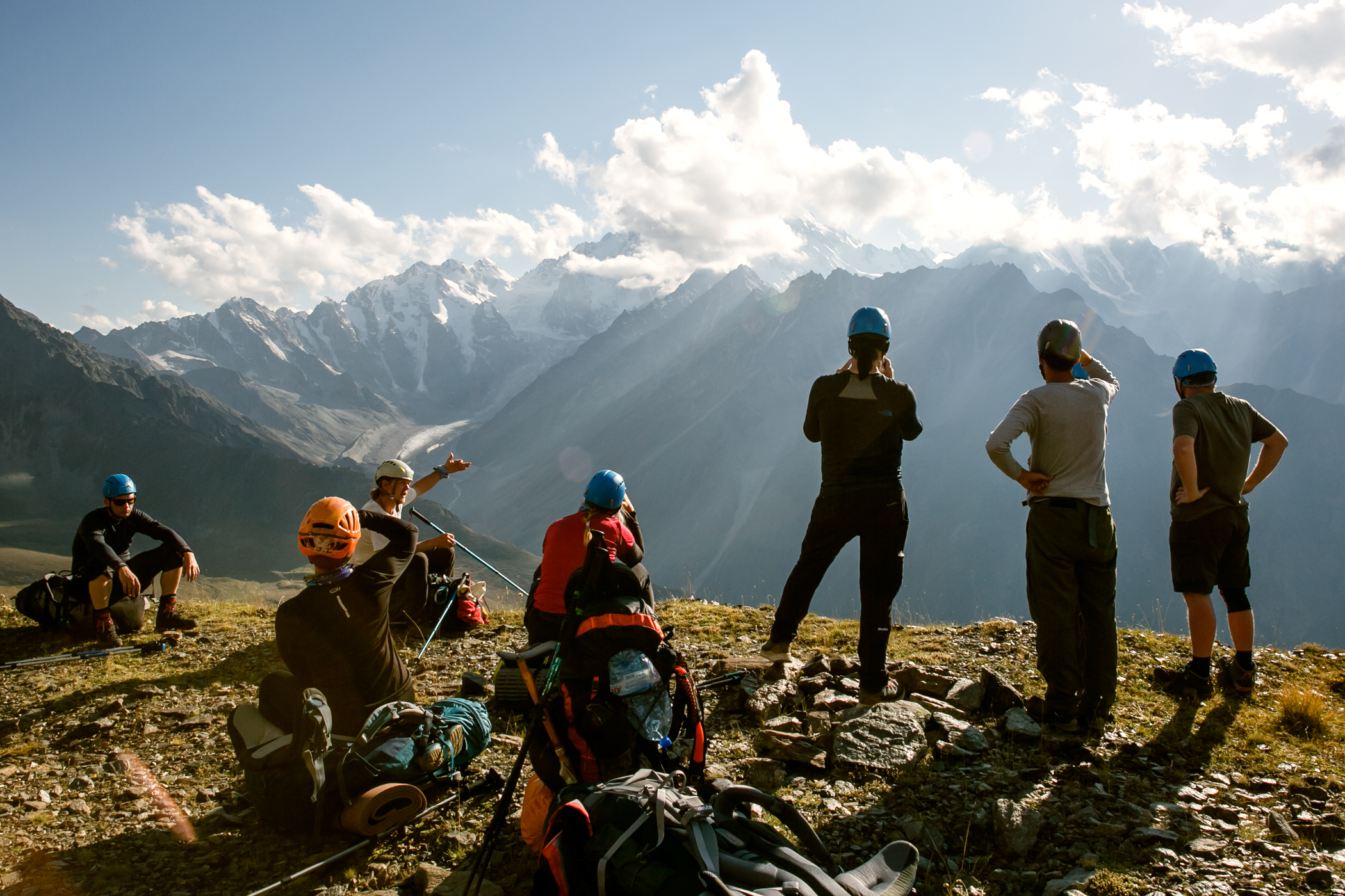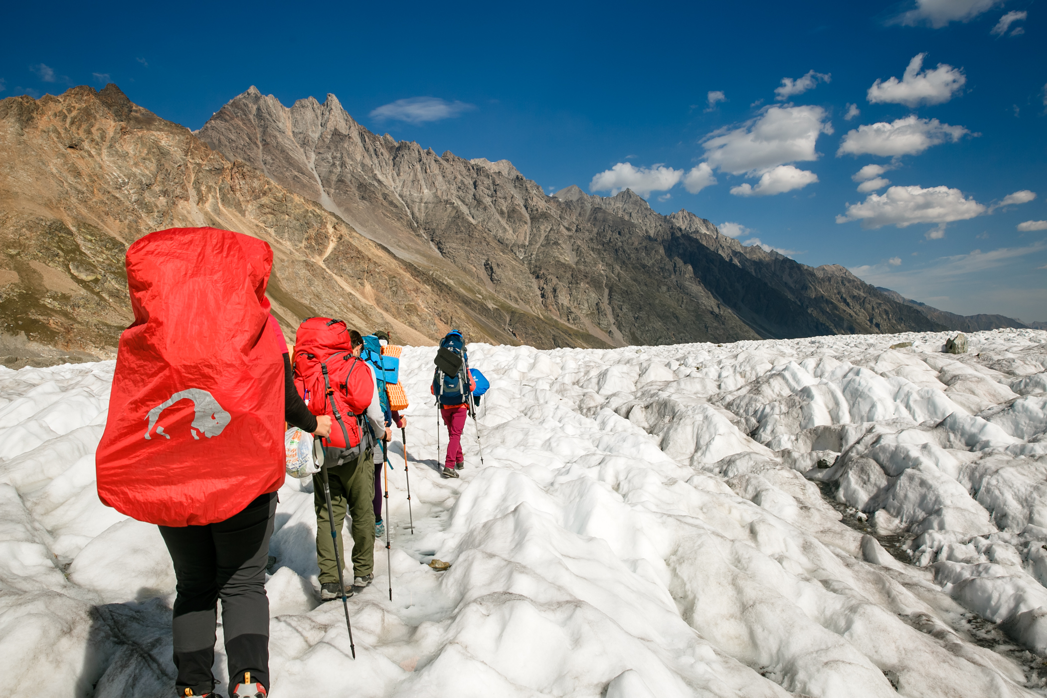 Сходила в этот поход в августе 2023 года. Он показался мне легче, чем 3/5. Впервые за все походы удавалось находу смотреть по сторонам и не ловить отдышку уже через 2 шага. Гидами были Ася Кукушкина и Женя Зайцев. У Аси был очень удобный темп, все время шла за ней без какого-то напряжения. Была возможность походить в радиалки, в некоторые дни сразу в две. Ася много отвечала на наши вопросы и рассказывала про альпинизм и скалолазание, показала необходимое снаряжение. В последний активный день организовала возможность полазить со страховкой, что для меня стало самым лучшим "спортивным" моментом из похода. Погода была жаркой, нужно много крема от солнца, при этом вечером иногда приходилось надевать пуховку. Если планируете пройти этот маршрут, то заранее подготовьтесь морально к тому, что вставать придётся в 4-5 утра. А на первых стоянках есть топь, мокрые ботинки - норма любого похода. Не готовым морально лучше попробовать что-то полегче