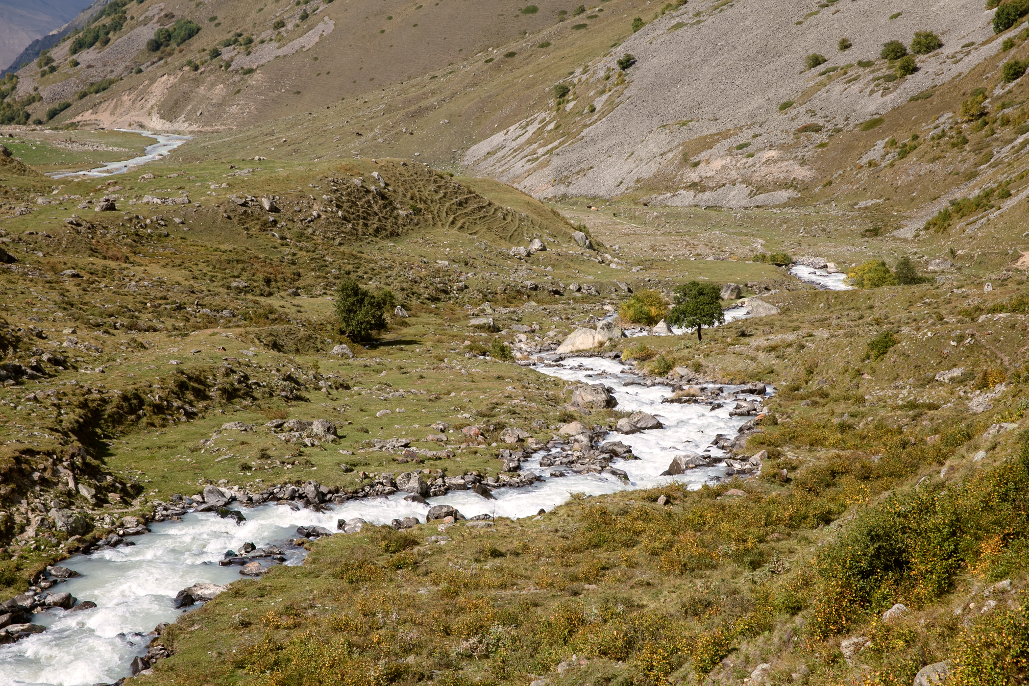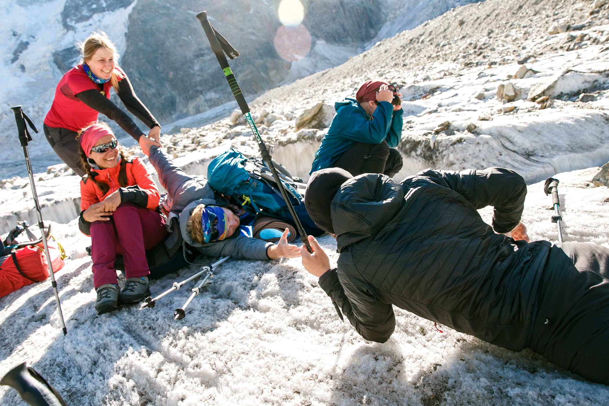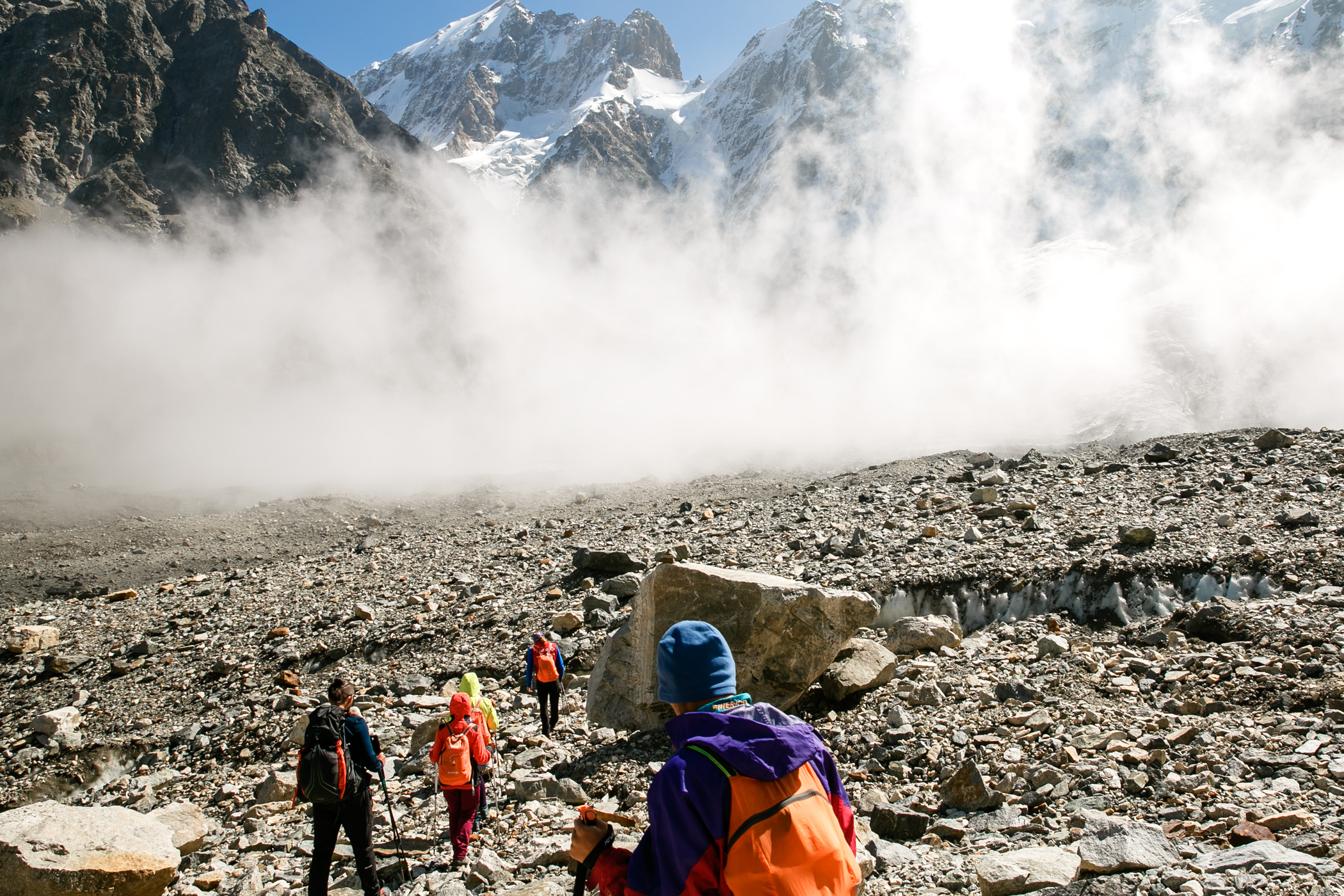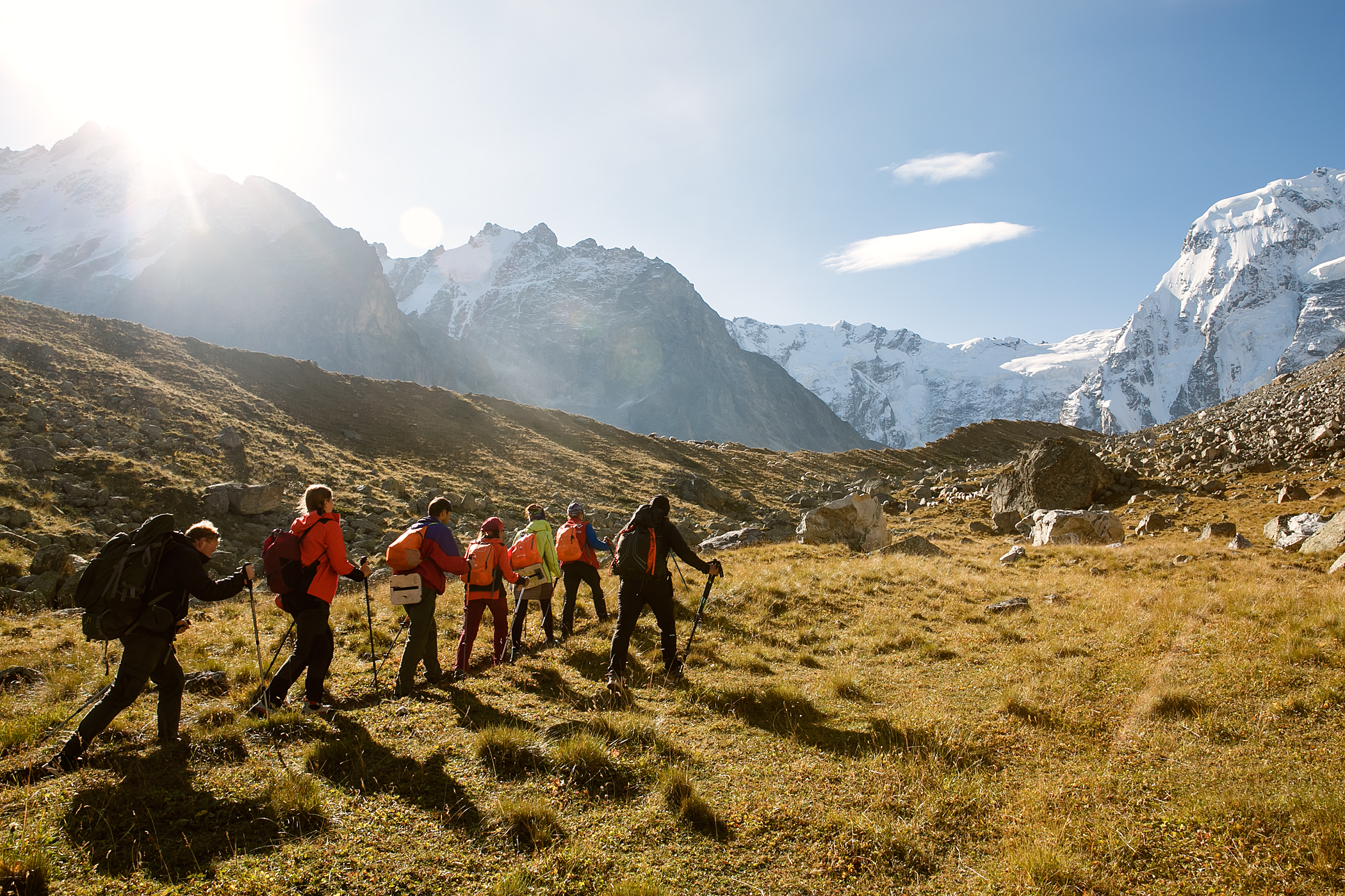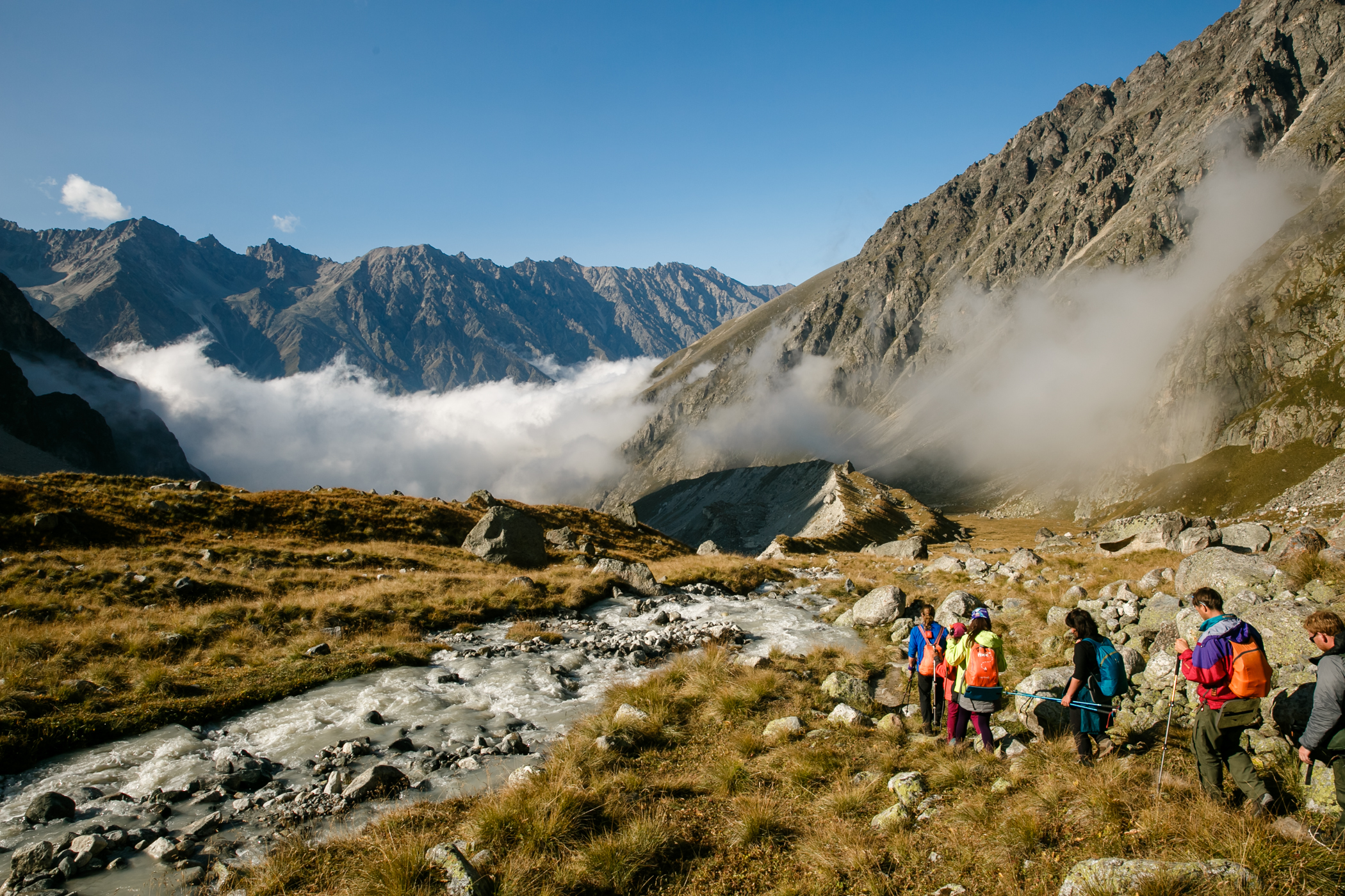 Сходила в этот поход в августе 2023 года. Он показался мне легче, чем 3/5. Впервые за все походы удавалось находу смотреть по сторонам и не ловить отдышку уже через 2 шага. Гидами были Ася Кукушкина и Женя Зайцев. У Аси был очень удобный темп, все время шла за ней без какого-то напряжения. Была возможность походить в радиалки, в некоторые дни сразу в две. Ася много отвечала на наши вопросы и рассказывала про альпинизм и скалолазание, показала необходимое снаряжение. В последний активный день организовала возможность полазить со страховкой, что для меня стало самым лучшим "спортивным" моментом из похода. Погода была жаркой, нужно много крема от солнца, при этом вечером иногда приходилось надевать пуховку. Если планируете пройти этот маршрут, то заранее подготовьтесь морально к тому, что вставать придётся в 4-5 утра. А на первых стоянках есть топь, мокрые ботинки - норма любого похода. Не готовым морально лучше попробовать что-то полегче