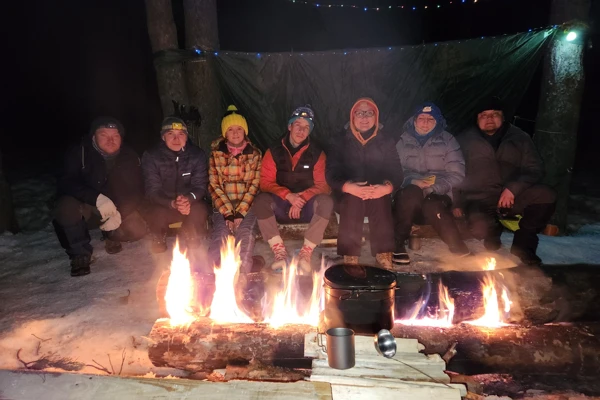 Когда я увидела этот поход, подумала, «Круто!»такая интересная концепция! Слово «нодья» для меня было новым, это тоже очень порадовало! Не долго думала и вписалась в этот поход. До этого не ходила с рюкзаком долго, решила попробовать свои силы. Взяла в аренду спальник -25,-30 и начала готовиться, собирать рюкзак. Мы встретились с ребятами на метро Котельники, дружно загрузились в автобус и поехали в Соболево. Погода была солнечная и уже чувствовалось тепло от солнца, оно грело. Мне подтянули рюкзак и идти стало веселей и легче, я перестала его чувствовать и мы двинулись в путь.Через какое-то время мы остановились на солнечной опушке и у нас был вкусный обед. Потом мы продолжили идти дальше и пришли к месту ночевки. Ребята пошли рубить дерево, больше всего меня поразила Алина, она так спокойно пошла и завалила еще одну сосну! Это просто невероятно круто! Стали натягивать тент, собирать лапник и делать настил под тент, ставили 2 палатки на всякий случай, из срубленного дерева ребята напилили 4 бревна на нодью(одно запасное). Лагерь был готов, наступили сумерки, принесенные фонарики на батарейках загорелись уютным светом. Мы начали ужинать и болтать обо всем. Это было так тепло и приятно. Нодья горела стабильным ровным огнем, так красиво!( она горела всю ночь и отправляла свой теплый воздух под тент).Потом готовились ко сну. Про себя очень переживала, как это будет не замерзну ли я. Но оказалось, что такой теплой и спокойной ночи у меня никогда не было в походе! Спала всю ночь как пирожочек и проснулась позже всех.) Утро всегда прекрасно, оно разлилось лучами солнца и запахом кофе по нашему лагерю. Мы вкусно позавтракали, собрались и двинулись в сторону Анциферово, на ферму оленей. Олени, они такие классные с пушистыми носами, кушали из моих рук мох. Потом зашли в музей, там есть зона обитателей леса, зона дома и зимнего быта и зона костюмов северных народов. Очень интересно! Стоит ли идти в этот поход? Стоит! За новым опытом, эмоциями и знаниями. Как одеваться? Взять с собой 2 комплекта ходовой одежды и один спальный комплект. Обязательно иметь треккинговую обувь! Обязательно иметь хорошую пенку и спальник на -25, -30. И самое главное 3 пары носков( ходовых) и одни шерстяные для сна. Если Вы новичок и впервые раз хотите попробовать идти с рюкзаком, этот ПВД для Вас! Очень благодарна Полине и Ивану за такой классный и интересный поход, за эмоции, дружескую атмосферу, было очень классно!☺️❤️🙌🏽 Мне очень понравилась эта двухдневная перезагрузка! Гиды -супер, люди - отличные, природа - великолепная, атмосфера -ламповая! Вообще хорошо, когда все хорошо! Всех обняла!))) Чего и Вам желаю, дорогой читатель!