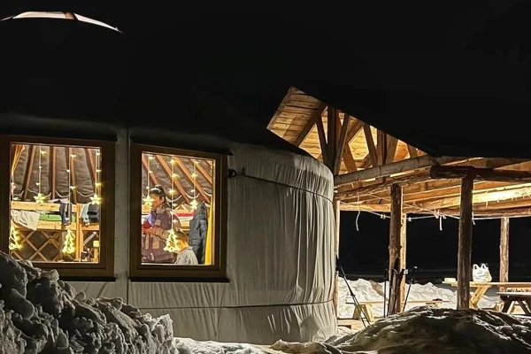 В юрту, где будем петь песни и общаться, нельзя заходить в уличной обуви, возьмите с собой тапочки или теплые носки.