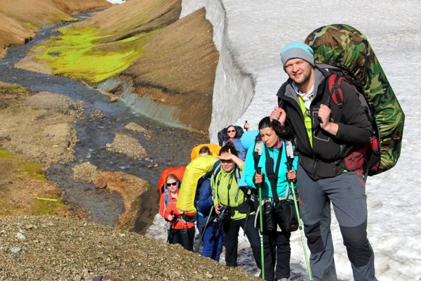 На всём протяжении маршрута мы ночуем в палатках на территории оборудованных кемпингов, ходим налегке и под рюкзаками, готовим еду сами под руководством инструктора, а в Рейкьявике питаемся в кафе.