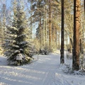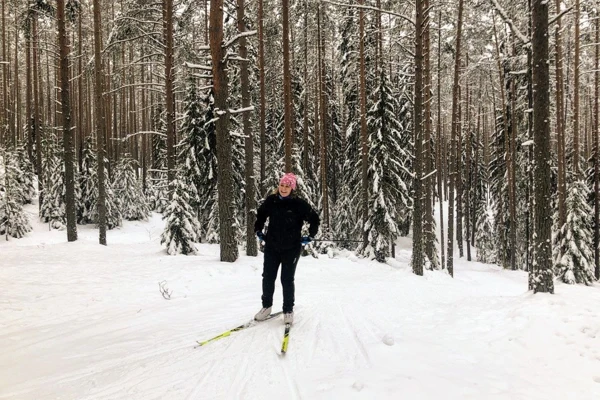 Участвовала в лыжном выезде 04.01.2025 вместе с Настей Галитаровой. Нам очень повезло с погодой, накануне выпал свежий снег, деревья в лесу были сказочными, погода солнечная, не слишком холодно и не слишком тепло. Хотелось все фотографировать, падать в снег и радоваться. Группа собралась не очень большая и дружная. На базе взяли лыжи и ботинки в аренду. Но настоятельно рекомендую по возможности брать свои лыжи с собой: 1. Когда мы пришли на базе выключилось электричество, касса закрылась и прокат перестал работать на неопределённое время. Нам повезло, что свет быстро восстановили и мы смогли двигаться по плану. На месте Настя показала несколько техник движения, торможения и мы выдвинули. Прошли сначала от лыжной базы несколько километров по лыжне до оз. Щучьего. Там было солнечно и живописно. Перекустли и по льду пересекли озеро. Дальше начался лыжный "трейл": катались по лесу без лыжни, перебрались через поваленные деревья, тренировали подъёмы и спуски. Было весело! Потом вернулись на базу по общему согласию. На обратном пути оз. Щучье назакате было особенным: появился туман, небо окрасилось в необычные закатные цвета. Всего вышло 15 км. Я очень устала, но довольна. Спасибо Настей и девчонкам, которые составили компанию в этот день!
