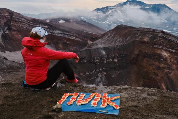 Отличный вышел поход. Местами было тяжело, но в основном из-за погоды. На сегодняшний день остались только хорошие воспоминания. Костя и Рита совсем справились, как настоящие профи. Особенно я доктора бы отметить Риту. Для меня до сих пор шок, что она прошла 1/3 пути на авачинский, развернулась обратно, отвела передумавших участников в лагерь и поднялась одна к нам на вершину. Вот это герой ! Рита всегда находила доброе слово, помогала в дежурстве и порой даже заменяла участников в этом деле. Минусы. Не очень понравилось идти по дороге в начале маршрута. Печально страдать видя довольные лица туристов в машине :). Но видимо по-другому никак. Главный минус это раскладка. Во-первых, макароны с тушенкой в сливках это что-то на непонятном. Почему не в томатной пасте хотя бы ? Если уж так хочется разнообразия. Зачем добавлять в гречу пармезан в кан, если он теряет вкус в таком объеме ? Зачем в раскладке продукты в стекле ? По итогу, 70 процентов участников выражали негативное впечатление по поводу дурацкой раскладки. Тем более, мы несем продукты на себе.