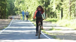 - Если захотите прогуляться по тропе, нужно просто спешиться и пойти рядом с велосипедом.